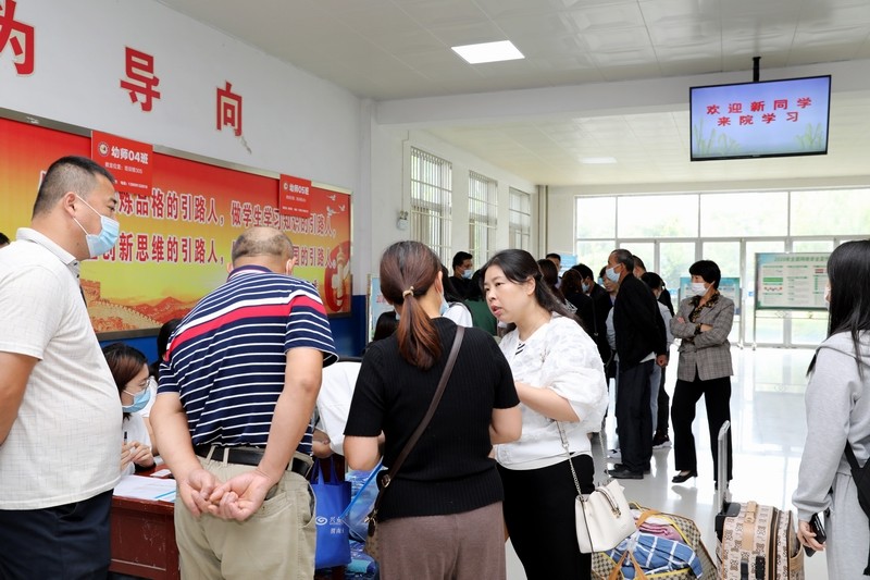 校園內(nèi)人頭攢動,車流如織,一派熱鬧景象。學生志愿者、教職員工熱情接待每一位新生,介紹學校情況。班主任教師熱情耐心解答新生及家長問題,幫助新生迅速完成報到手續(xù)。