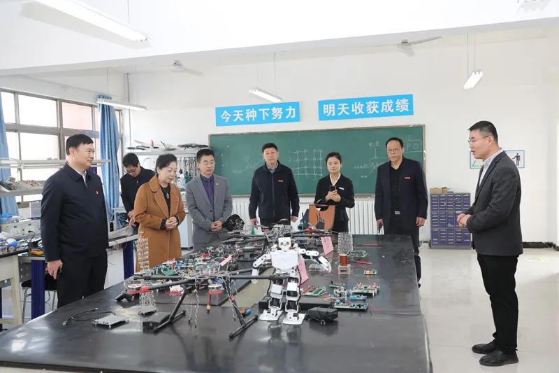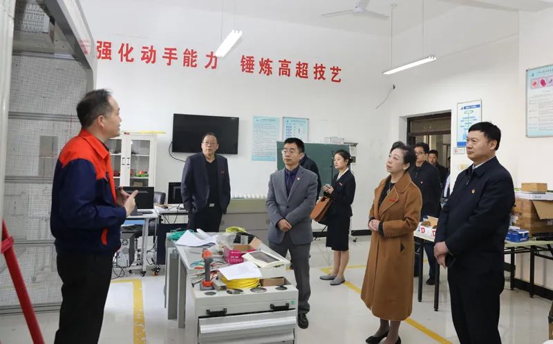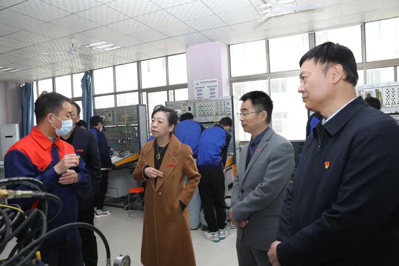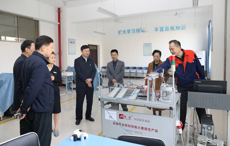 雷亞萍一行先后參觀了汽車實訓基地、京東電商校園實訓中心、機械加工實訓車間、數控車(銑)實訓車間、PLM數字化工廠體驗中心、數控維修實訓車間、三坐標精密測量室、五軸五聯動(DMG)高端數控加工中心、機電專業(yè)一體化教室、機器人焊接功能展示、教學型機器人功能展示等,實地考察了學生技能實訓情況,詳細了解了相關設備的規(guī)模、技能及實訓效果等。