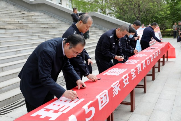 為深入學(xué)習(xí)貫徹黨的二十大精神,貫徹總體國(guó)家安全觀,著力推動(dòng)大安全理念深入人心、落地生根,按照市局經(jīng)文保支隊(duì),高新分局、國(guó)保大隊(duì)的安排,4月14日保衛(wèi)處、學(xué)生處聯(lián)合組織開展“渭南技師學(xué)院2023年4•15國(guó)家安全教育日”系列宣傳活動(dòng)。 上午09:30在教學(xué)樓前舉行了國(guó)家安全教育日主題活動(dòng)簽名儀式,渭南市公安局國(guó)保支隊(duì)政委權(quán)衛(wèi)東、經(jīng)文保支隊(duì)隊(duì)長(zhǎng)薛海濤、高新分局國(guó)保大隊(duì)民警將建軍、馬四海,學(xué)生處處長(zhǎng)李峰、保衛(wèi)處處長(zhǎng)李向陽(yáng)及1000余名學(xué)生參加活動(dòng),簽名儀式由李峰主持。黨委委員、紀(jì)委書記蔡小倫出席活動(dòng)。 李向陽(yáng)在簽名儀式上講到,維護(hù)國(guó)家安全是我們每個(gè)公民義不容辭的責(zé)任。作為中職學(xué)生,要自覺維護(hù)文化安全;自覺維護(hù)生態(tài)安全;自覺維護(hù)信息安全;自覺維護(hù)生態(tài)安全;服從學(xué)院管理,嚴(yán)格遵守校規(guī)校紀(jì);提高警惕,嚴(yán)防網(wǎng)絡(luò)電信詐騙;認(rèn)真學(xué)習(xí)科學(xué)文化知識(shí),努力提高自身修養(yǎng),爭(zhēng)做合格中職畢業(yè)生。 最后與會(huì)領(lǐng)導(dǎo)和同學(xué)們一起參加了“加強(qiáng)安全管理,建設(shè)平安校園”簽名活動(dòng),公安民警給同學(xué)們發(fā)放了學(xué)習(xí)國(guó)家安全宣傳資料。