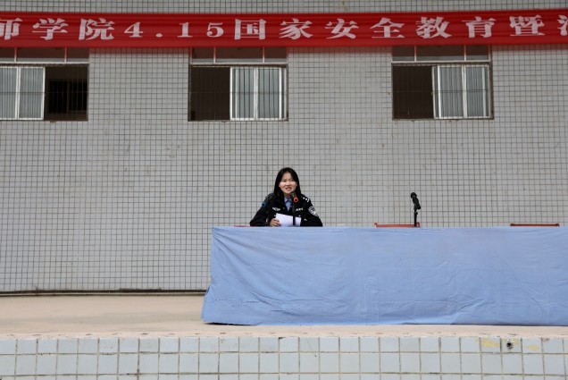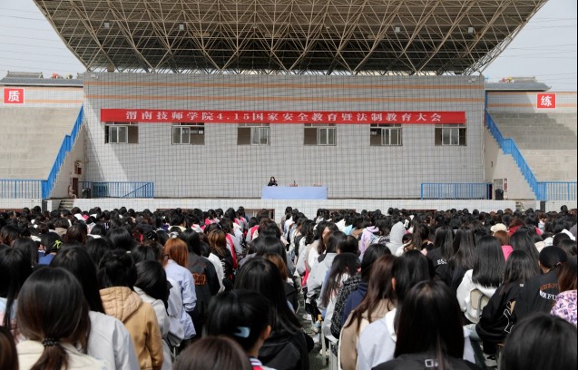 上午10點(diǎn)30分,保衛(wèi)處、學(xué)生處聯(lián)合在學(xué)院操場(chǎng)組織召開“4.15國(guó)家安全教育暨法制教育大會(huì)”,全院6000余名師生參加,會(huì)議由學(xué)生處處長(zhǎng)李峰主持。 本次國(guó)家安全暨法制教育大會(huì)邀請(qǐng)了渭南市公安局法制支隊(duì)三級(jí)警長(zhǎng)王曉燕警官為同學(xué)們做報(bào)告。會(huì)上,李峰處長(zhǎng)為王曉燕警官頒發(fā)“校外法制輔導(dǎo)員”聘書。