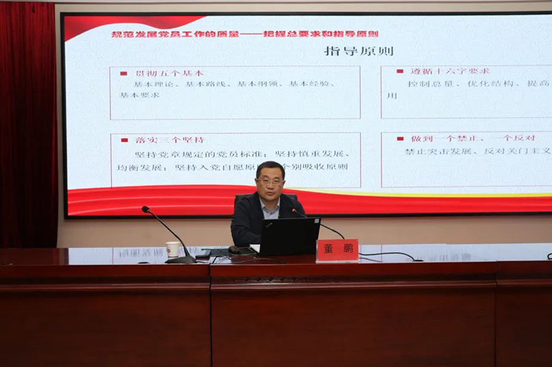 本次培訓(xùn)會(huì)邀請了市委組織部組織三科科長董鵬,以“規(guī)范發(fā)展黨員工作 保證發(fā)展黨員質(zhì)量”為主題,圍繞“全市發(fā)展黨員工作的現(xiàn)狀”、“發(fā)展黨員存在問題的根源”、“規(guī)范發(fā)展黨員工作的質(zhì)量”三個(gè)方面對黨務(wù)干部進(jìn)行專題培訓(xùn),詳細(xì)講授了目前我市黨員發(fā)展工作的背景、存在問題以及今后如何規(guī)范化和制度化發(fā)展黨員。