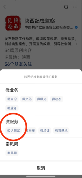 根據(jù)學(xué)院«關(guān)于開展第六個紀(jì)律教育學(xué)習(xí)宣傳月活動的通知»,請大家積極參與并完成“省第六個紀(jì)律教育學(xué)習(xí)宣傳月黨規(guī)黨紀(jì)知識測試”。請從“陜西紀(jì)檢監(jiān)察”微信公眾號進入測試欄目,試卷共50道題,總分100分,每人有兩次考試機會,選取最高分計入成績。 具體操作方法為: 進入“陜西紀(jì)檢監(jiān)察”微信公眾號,依次點擊“服務(wù)”—“微服務(wù)—知識測試”,進入“練習(xí)”和“考試”兩個模塊進行知識測試。(注:可先在“練習(xí)”模塊練習(xí)。) 參考方法如圖: