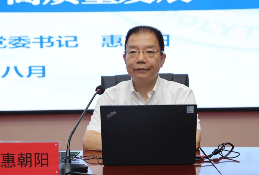 陜西工業(yè)職業(yè)技術(shù)學院黨委書記惠朝陽以《把握大勢,明確任務,履職盡責,努力促進職業(yè)教育高質(zhì)量發(fā)展》為題,圍繞習近平總書記關(guān)于職業(yè)教育工作的重要論述,從“把握職業(yè)教育發(fā)展大勢、明確職業(yè)教育重點任務、履行立德樹人根本職責”三個方面進行了專題授課,強調(diào)職業(yè)教育要堅持黨建引領(lǐng),強化思政育人,做到立足一個根本,緊抓兩個群體,完善三個體系,體現(xiàn)“四種味道”,把握五大路徑,闡釋了職業(yè)教育事業(yè)發(fā)展中具有方向性、根本性、全局性的理論和實踐問題。