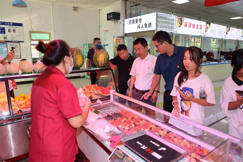 在學(xué)院食堂,張?jiān)洪L一行詢問了工作人員食品采買、進(jìn)貨查驗(yàn)、食品貯存、加工制作、餐飲器具消殺等每個環(huán)節(jié)的情況,要求從思想上高度重視校園食品安全,樹立安全無小事,責(zé)任大于天的意識。加強(qiáng)對管理及從業(yè)人員的考核和監(jiān)督,從細(xì)節(jié)上精益求精,從源頭上防范校園食品安全事故的發(fā)生,守護(hù)好學(xué)生們舌尖上的安全,讓孩子們吃得安全、吃得放心、吃得健康。