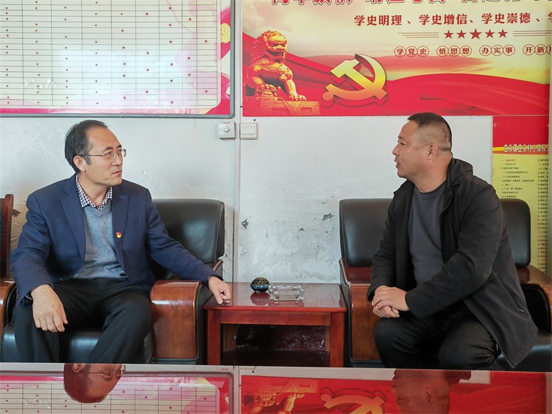 蔡小倫同莊頭村黨總支書記關小明、院駐村工作隊第一書記王雙喜,工作隊員馮西勝、盧星星等人進行了座談,就主題教育開展情況、基層黨組織建設工作和特色產業(yè)發(fā)展工作進行了深入交流。