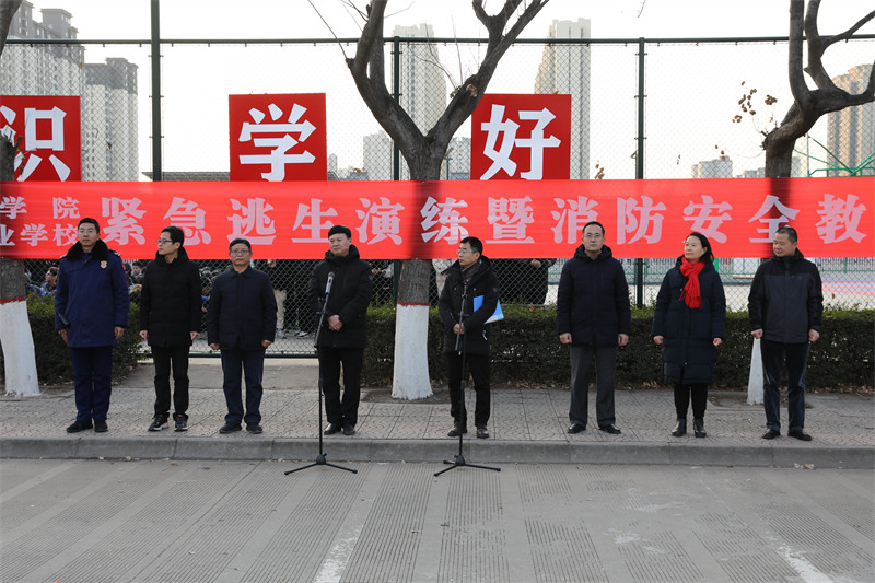 樹(shù)立安全防范意識(shí),構(gòu)建平安和諧校園。為進(jìn)一步提高全院師生的緊急逃生技能,學(xué)會(huì)使用消防器材,普及消防安全知識(shí),提高風(fēng)險(xiǎn)防范意識(shí)和自救互救等突發(fā)事件應(yīng)變能力,12月20日下午,學(xué)院與高新消防大隊(duì)聯(lián)合舉辦消防應(yīng)急疏散演練活動(dòng)。黨委書記曲志勇出席并宣布演練活動(dòng)開(kāi)始。黨委副書記、院長(zhǎng)張君升擔(dān)任本次演練活動(dòng)總指揮。黨委委員、副院長(zhǎng)胡忠民,黨委副書記蔡小倫,黨委委員、副院長(zhǎng)張衛(wèi)龍、石曉蘭,黨委委員、總會(huì)計(jì)師邢毅,渭南高新區(qū)應(yīng)急救援中隊(duì)指導(dǎo)員馮帆,副站長(zhǎng)魏晨曦,學(xué)生處、保衛(wèi)處全體人員,2022級(jí)1500余名學(xué)生參加活動(dòng)。活動(dòng)由保衛(wèi)處處長(zhǎng)李向陽(yáng)主持。