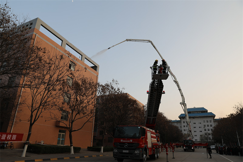 張君升作總結(jié)講話,對(duì)此次演練活動(dòng)的開(kāi)展給予了充分肯定,對(duì)渭南高新區(qū)應(yīng)急救援中隊(duì)的支持表示感謝,他指出此次演練活動(dòng)準(zhǔn)備充分,組織有序,整個(gè)過(guò)程快速,安全,有序,同學(xué)們反應(yīng)迅速,聽(tīng)從指揮、服從管理,有序逃生意識(shí)強(qiáng)。他強(qiáng)調(diào)安全責(zé)任重于泰山,重視安全是我們每個(gè)人的義務(wù),也是我們每個(gè)人的責(zé)任,廣大師生要加強(qiáng)安全知識(shí)學(xué)習(xí),愛(ài)護(hù)學(xué)院消防安全設(shè)施,提高自防自救本領(lǐng),在內(nèi)心里真正做到警鐘長(zhǎng)鳴。學(xué)院相關(guān)部門要加強(qiáng)與屬地消防等部門的聯(lián)系,建立科學(xué)規(guī)范的聯(lián)動(dòng)機(jī)制,將“人防、技防、物防”相統(tǒng)一,常抓不懈,防患未然,把學(xué)院的各項(xiàng)安全管理工作做的更好、更扎實(shí)。以消防應(yīng)急疏散演練為契機(jī),總結(jié)經(jīng)驗(yàn),把安全隱患消除在萌芽狀態(tài),把安全工作做好、做實(shí)、做細(xì),為全體師生建立起“平安、和諧、舒心”的學(xué)習(xí)和生活場(chǎng)所,保障全院師生生命安全,維護(hù)學(xué)院安全穩(wěn)定。