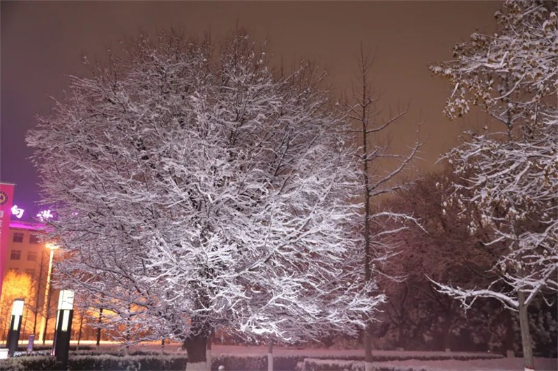 漫步校園 賞雪花翩然飄下 看瓊芳灑落肩頭 聽霜掛穿林打葉 品飛雪中的唯美畫卷