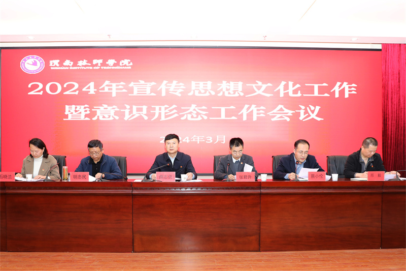 曲志勇在總結(jié)講話中指出,習(xí)近平文化思想是習(xí)近平新時(shí)代中國(guó)特色社會(huì)主義思想的文化篇,為我們?cè)谛聲r(shí)代新征程做好宣傳思想文化工作提供了強(qiáng)大思想武器和科學(xué)行動(dòng)指南,要高舉旗幟,深學(xué)細(xì)悟習(xí)近平文化思想,明確新的文化使命。并就做好今年的宣傳思想文化和意識(shí)形態(tài)工作提出三點(diǎn)要求。一是堅(jiān)持舉旗幟抓導(dǎo)向,把握正確政治方向,堅(jiān)定不移地用習(xí)近平新時(shí)代中國(guó)特色社會(huì)主義思想引領(lǐng)工作。要堅(jiān)定擁護(hù)“兩個(gè)確立”、堅(jiān)決做到“兩個(gè)維護(hù)”,牢牢把握教育的政治屬性,堅(jiān)定不移為人民服務(wù),為社會(huì)主義服務(wù),培養(yǎng)德智體美勞全面發(fā)展的社會(huì)主義合格建設(shè)者和接班人;要全面貫徹落實(shí)黨的教育方針,服務(wù)職業(yè)教育國(guó)家發(fā)展戰(zhàn)略,在教育教學(xué)中抓落實(shí),在宣傳思想中抓貫徹,為國(guó)家大政方針的貫徹落實(shí)和全面實(shí)施提供輿論宣傳和思想保證。二是聚焦中心大局,持續(xù)鞏固壯大主流思想輿論,牢牢把握宣傳思想文化和意識(shí)形態(tài)工作領(lǐng)導(dǎo)權(quán)和主動(dòng)權(quán)。要持續(xù)在強(qiáng)化理論武裝,壓實(shí)意識(shí)形態(tài)工作責(zé)任制,在加強(qiáng)新聞宣傳等方面下功夫、求突破、出實(shí)招;要深刻認(rèn)識(shí)意識(shí)形態(tài)工作的極端重要性,壓實(shí)意識(shí)形態(tài)工作責(zé)任制,抓緊抓實(shí)意識(shí)形態(tài)領(lǐng)域各項(xiàng)重點(diǎn)工作;要加強(qiáng)輿情應(yīng)對(duì)與處置,堅(jiān)決防范化解意識(shí)形態(tài)領(lǐng)域風(fēng)險(xiǎn)隱患,守住管好意識(shí)形態(tài)陣地,確保學(xué)院政治安全和意識(shí)形態(tài)安全。三是強(qiáng)化政治意識(shí),落實(shí)主體責(zé)任,奮力開創(chuàng)學(xué)院宣傳思想文化和意識(shí)形態(tài)工作的新局面。要加強(qiáng)學(xué)校守正創(chuàng)新、改革發(fā)展、辦學(xué)治校的成就宣傳、經(jīng)驗(yàn)宣傳,典型宣傳,做大做強(qiáng)主流思想輿論,及時(shí)生動(dòng)全面展現(xiàn)形象;要深刻把握新媒體傳播規(guī)律,圍繞黨和國(guó)家大事要事及學(xué)院中心工作,推出一批有深度、廣度、亮度的融媒體作品,構(gòu)建大宣傳格局,講好學(xué)院故事,傳遞學(xué)院聲音,樹立學(xué)院形象;要堅(jiān)持立德樹人,加強(qiáng)教學(xué)育人陣地建設(shè),發(fā)揮思政課鑄魂育人主渠道作用,扎實(shí)推動(dòng)習(xí)近平新時(shí)代中國(guó)特色社會(huì)主義思想“三進(jìn)”工作,引導(dǎo)學(xué)生在真學(xué)真懂真信真用上下功夫,使黨的創(chuàng)新理論真正融會(huì)于心、見之于行。