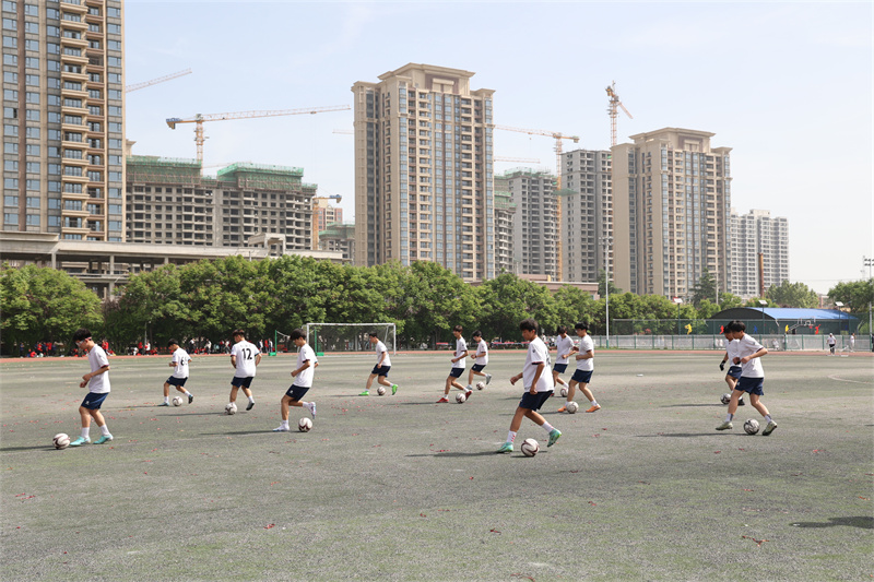 足球少年們 伴隨著青春的節(jié)拍 用整齊劃一的動作 步調(diào)一致的表演 奉獻(xiàn)了一場精彩的足球動作表演