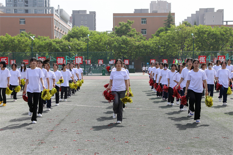她們激情澎湃、活力四射 手持花球 伴著動感的音樂 彰顯出活力的光芒 為運動會開幕式帶來別具一格的視覺盛宴