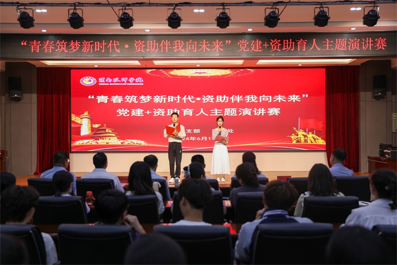 為進一步加大學(xué)生資助政策宣傳力度,全面展示資助政策落實成效,激勵受助學(xué)生奮發(fā)圖強、立志成才,6月13日,學(xué)工黨支部黨建+資助育人主題演講賽“青春筑夢新時代,資助伴我向未來 ”在產(chǎn)教融合報告廳舉行,黨委副書記、院長張君升,黨委副書記蔡小倫出席活動,經(jīng)過初賽的激烈爭奪,最終有10位選手脫穎而出,在這個舞臺上用知識與智慧向我們展示了他們的風(fēng)采。