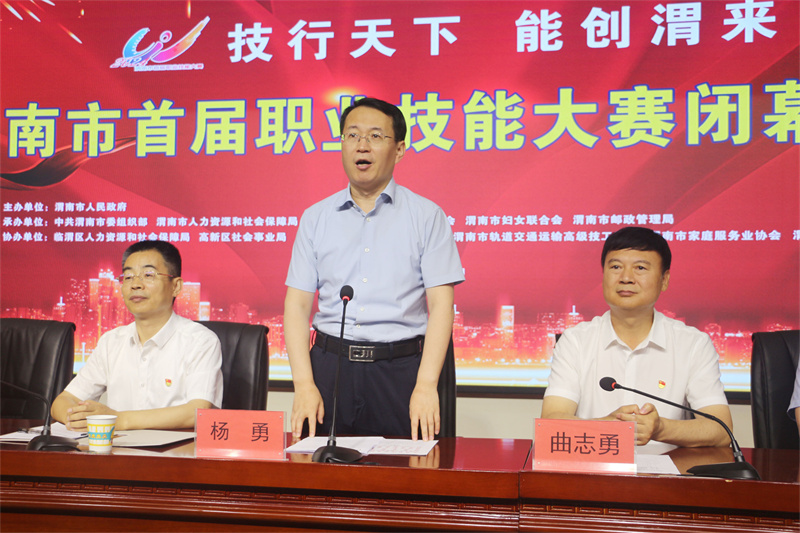 市人社局黨組書記、局長楊勇宣布渭南市首屆職業(yè)技能大賽閉幕。