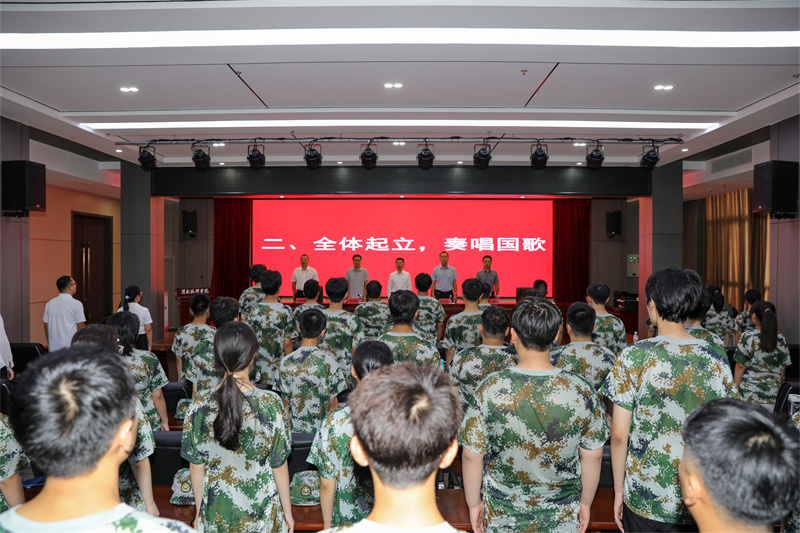大會在雄壯的國歌聲中莊嚴開始,全體師生肅立,奏唱國歌,激昂的國歌聲激發(fā)了在場每一位新生對祖國的熱愛與崇敬之情。