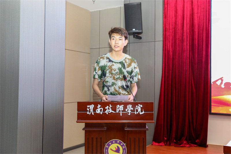 軍訓教官代表表達了對軍訓工作的決心與信心,承諾將以身作則,嚴格訓練,同時注重科學施訓,確保每位新生都能在安全、有序的環(huán)境中接受鍛煉,收獲成長。教官們鏗鏘有力的誓言,讓在場的每一位新生都感受到了軍人的風采與力量。 新生馮博寧代表全體新生表達了對軍訓的期待與決心,表示將珍惜這次難得的機會,不畏艱難,勇于挑戰(zhàn),努力成為一名優(yōu)秀的中學生。