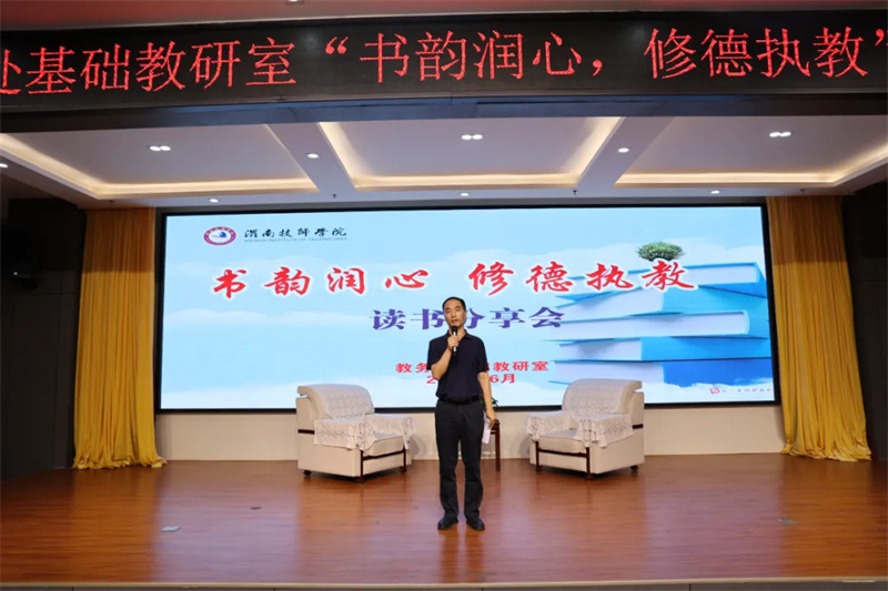 為激發(fā)教師的讀書(shū)熱情,打造書(shū)香校園的文化氛圍,近日,教務(wù)處基礎(chǔ)教研室在產(chǎn)教融合樓二樓舉辦了以“書(shū)韻潤(rùn)心·修德執(zhí)教”為主題的讀書(shū)分享會(huì),本次分享會(huì)主要圍繞吳非老師《致青年教師》中的教育理念,結(jié)合分享教師的個(gè)人經(jīng)驗(yàn)兩個(gè)方面,以談話(huà)和分享兩部分組成。