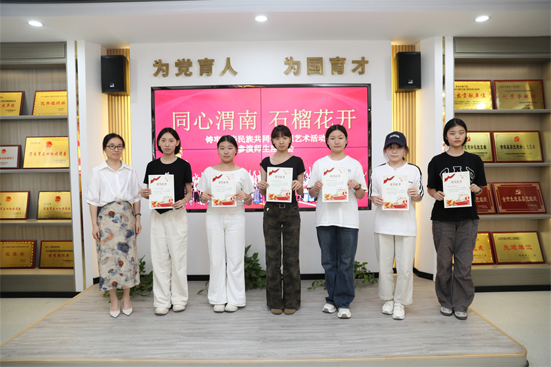 最后,在熱烈的掌聲中,學(xué)院領(lǐng)導(dǎo)為參演師生頒發(fā)由渭南市民族宗教事務(wù)局簽發(fā)的榮譽(yù)證書。參演師生懷著激動與自豪的心情,分批接受屬于他們的榮譽(yù)。這一刻,不僅是對個人努力的認(rèn)可,更是對學(xué)院在民族團(tuán)結(jié)教育與藝術(shù)實(shí)踐領(lǐng)域取得成果的見證。今后,師生們將以更昂揚(yáng)的姿態(tài),為民族團(tuán)結(jié)與技能人才培育事業(yè)貢獻(xiàn)磅礴力量。