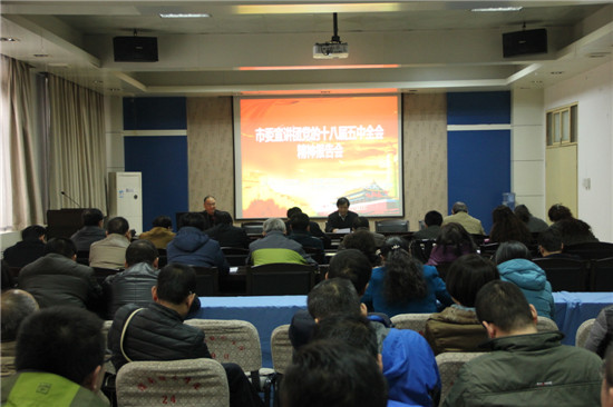 12月11日,學院在睿智軒舉辦黨的十八屆五中全會精神報告會,邀請市委宣講團成員、市委黨校副校長王四海教授作專題輔導。全體黨員、干部參加,報告會由黨委副書記李東旺主持。
