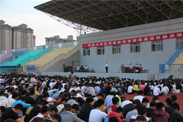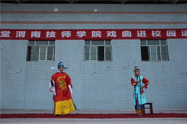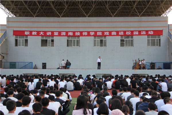 5月23日,學(xué)院邀請渭南市黃土地秦腔劇團(tuán),在學(xué)院操場為全體師生進(jìn)行專場演出。演出的劇目有《探窯》、《梁秋燕》、《十二把鐮刀》、《屠夫狀元》等,名家名劇,異彩紛呈,師生熱情高漲,深受教育。學(xué)生處精心組織,班主任到場配合,秩序井然,活動達(dá)到預(yù)期效果。 戲曲進(jìn)校園活動是我市創(chuàng)建全國文明城市的一項(xiàng)重要內(nèi)容,是傳承弘揚(yáng)優(yōu)秀戲曲文化,豐富校園文化生活、打造校園文化教育特色的具體實(shí)踐。將戲曲藝術(shù)融入校園文化建設(shè),使青少年近距離接觸戲曲文化,感受戲曲藝術(shù)的魅力,陶冶高尚的道德情操,提高藝術(shù)審美和文藝素養(yǎng),激發(fā)學(xué)生熱愛祖國文化、熱愛家鄉(xiāng)的美好情感。