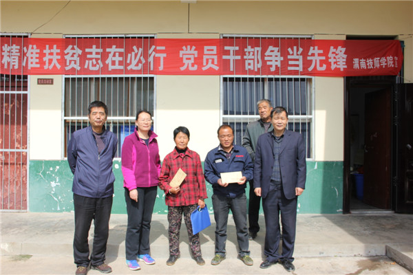 10月12日,陽光明媚,秋高氣爽。學(xué)院院長曲志勇、黨委副書記李東旺一行在莊頭村包村干部陳峰、聶杰和村干部白建海陪同下,查驗(yàn)包聯(lián)村曹莊9戶貧困戶種植的高效農(nóng)業(yè),在田間地頭為貧困戶兌付高效農(nóng)業(yè)引導(dǎo)補(bǔ)助資金21600元,增強(qiáng)貧困戶發(fā)展產(chǎn)業(yè)的信心和決心。 年初,學(xué)院黨委制定《曹莊村2017年度幫扶計(jì)劃》。一年來,學(xué)院和鎮(zhèn)黨委、政府共同努力,第一書記、包村干部和村干部真抓實(shí)干下,精準(zhǔn)扶貧,精準(zhǔn)施策。完成幫扶的工作是:為全村161戶群眾田間地頭引水工程投資5萬元,為8戶貧困戶田間地頭引水工程投資1.6萬——為3戶危房貧困戶鋪窯背1.5萬元,為1戶貧困戶孩子上大學(xué)資助2000元,慰問干部黨員、生病群眾3000元,兌付高效農(nóng)業(yè)引導(dǎo)資金21600元等,資金全部落實(shí)兌付到位。