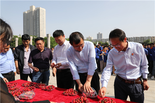 在啟動(dòng)儀式結(jié)束后,與會(huì)領(lǐng)導(dǎo)與我院師生共同品嘗美味的澄城櫻桃并進(jìn)行義購。