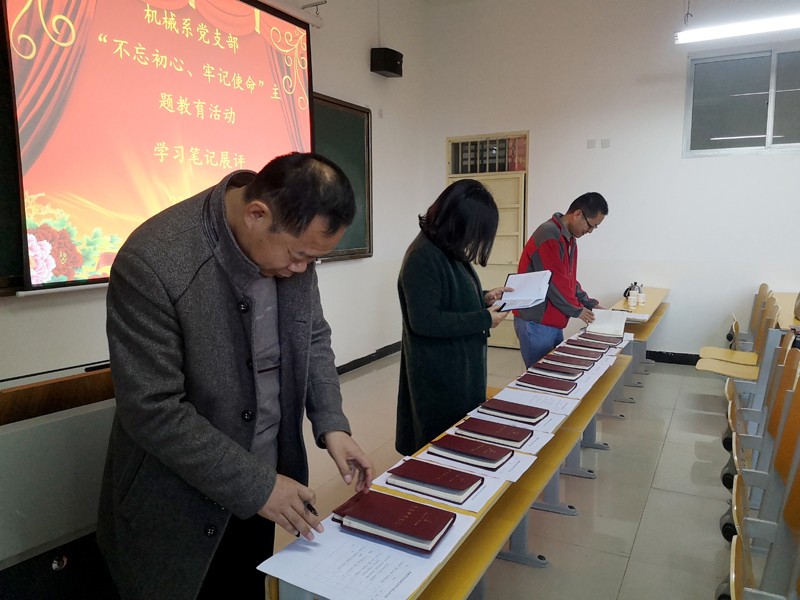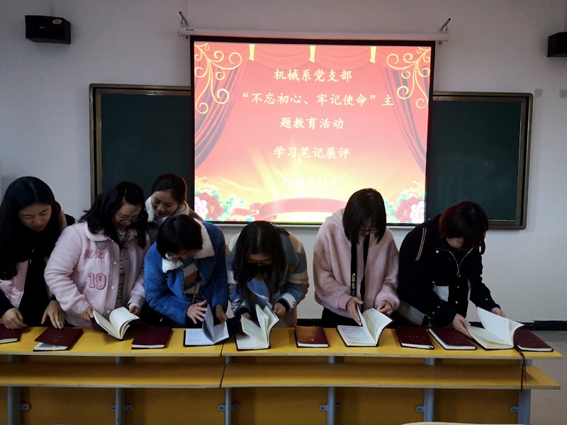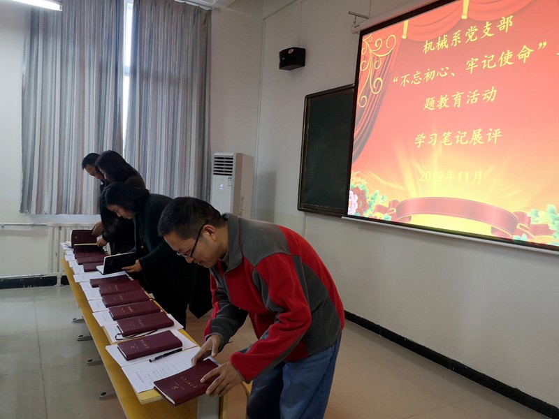 11月13日,機械系黨支部開展“不忘初心、牢記使命”主題教育黨員學習筆記展評交流活動。活動集中展評了支部黨員在開展主題教育以來的個人自學學習筆記。展評中,大家依次對參展筆記進行點評和學習,相互借鑒交流,達到了相互促進、共同學習、以查促學的目的。