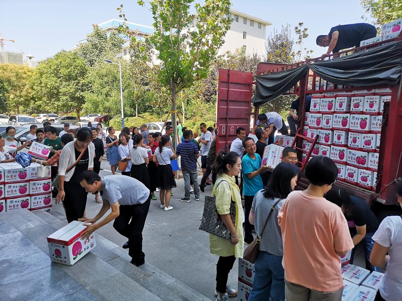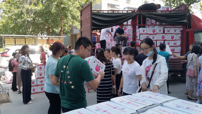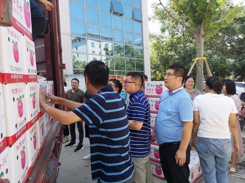 這批酥梨是學(xué)院幫扶村——澄城縣莊頭鎮(zhèn)曹莊村村民種植的,該村種植面積有50余畝。由于受今年疫情影響,出現(xiàn)了滯銷。學(xué)院黨委聞?dòng)嵑,?dòng)員教職工以購(gòu)代捐,支持消費(fèi)扶貧,教職工們積極響應(yīng),紛紛解囊相助。
