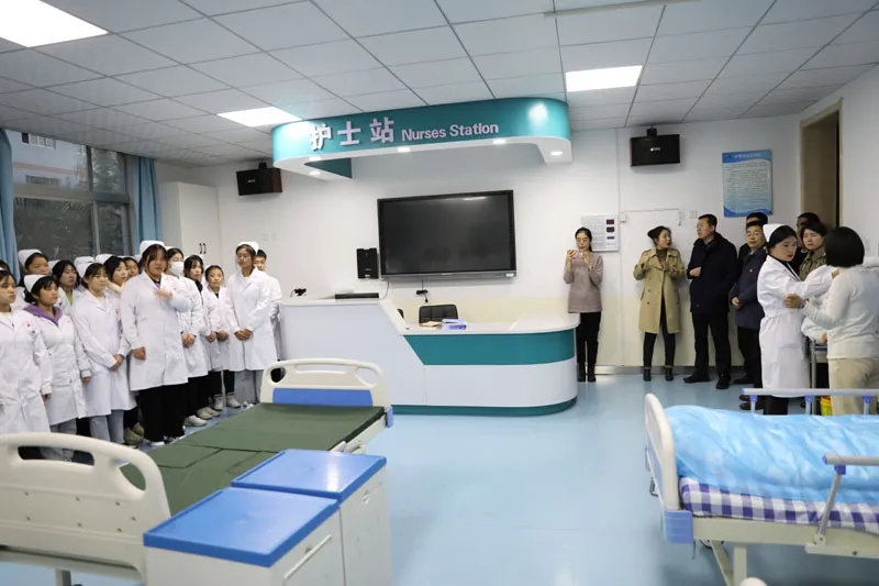井海濱副廳長一行在產(chǎn)教融合大樓觀看了學(xué)院“紅色精神•華彩渭南”大型系列展開幕式視頻和《職教名!沸麄髌。參觀了“紅色精神•華彩渭南”大型系列展,聽取了黨委書記曲志勇、院長張君升關(guān)于成立陜西非物質(zhì)文化遺產(chǎn)技能培訓(xùn)學(xué)院的籌備、建設(shè)非遺技能大師工作室和陜西非遺傳習(xí)孵化中心等情況匯報(bào)。來到現(xiàn)代服務(wù)系,深入了解護(hù)理、旅游管理、酒店管理、學(xué)前教育等專業(yè)學(xué)生學(xué)習(xí)、實(shí)訓(xùn)情況,高度評價(jià)學(xué)院日常管理和教育教學(xué)等工作,鼓勵師生們再接再厲,更進(jìn)一步。