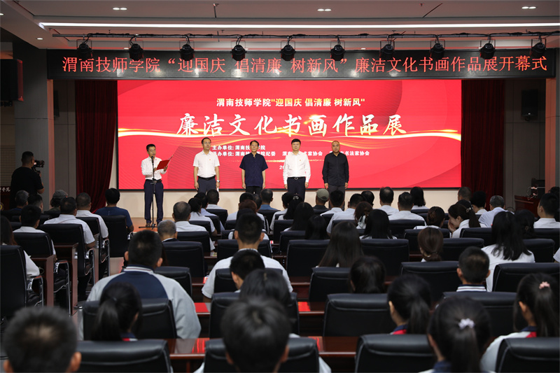 翰墨歌盛世,妙筆揚清風。為深入學習貫徹落實黨的二十屆三中全會精神,熱烈慶祝中華人民共和國成立75周年,深入推進廉潔育人、清廉校園建設工程,9月29日上午,由渭南技師學院、渭南市書法家協(xié)會、渭南市美術家協(xié)會聯合舉辦的“迎國慶 倡清廉 樹新風”廉潔文化書畫作品展在渭南技師學院順利開幕。
