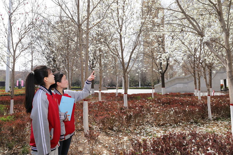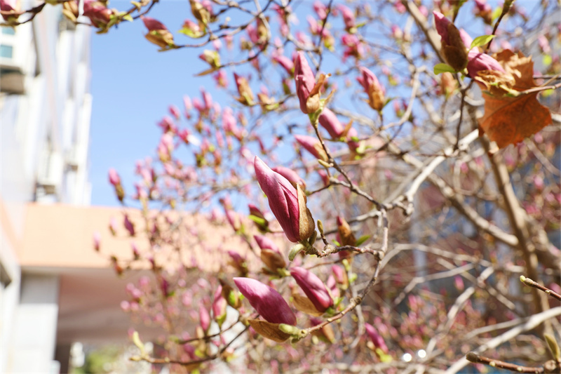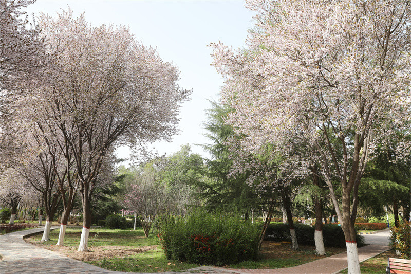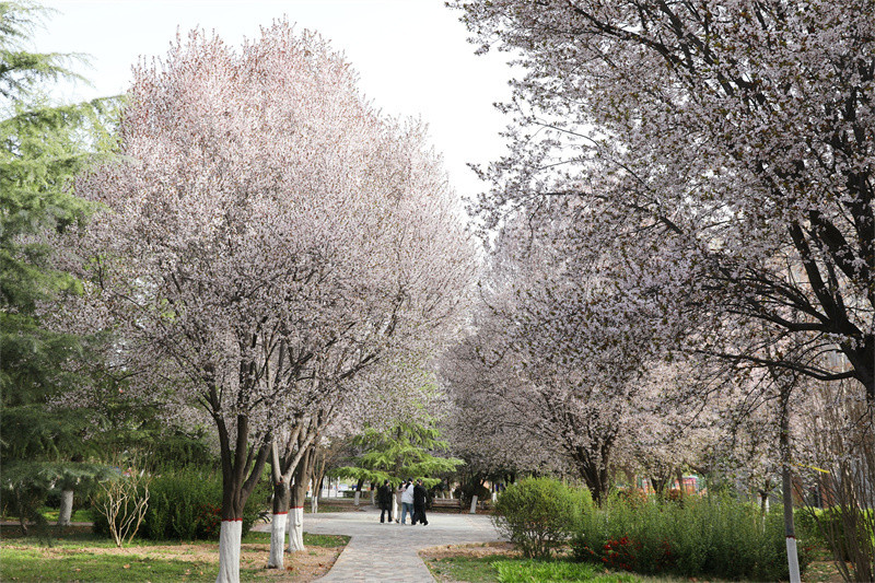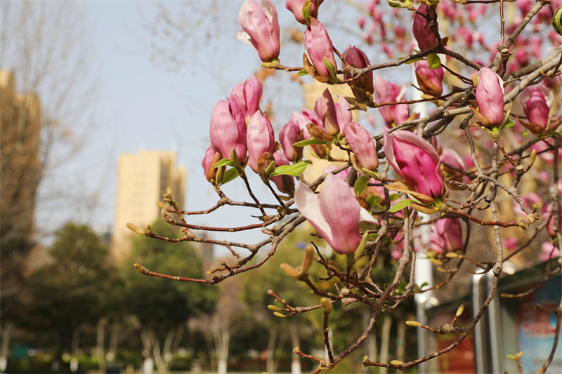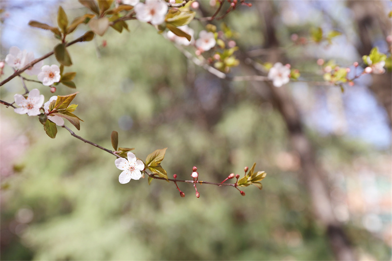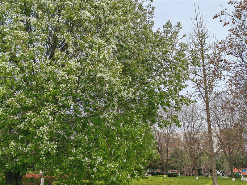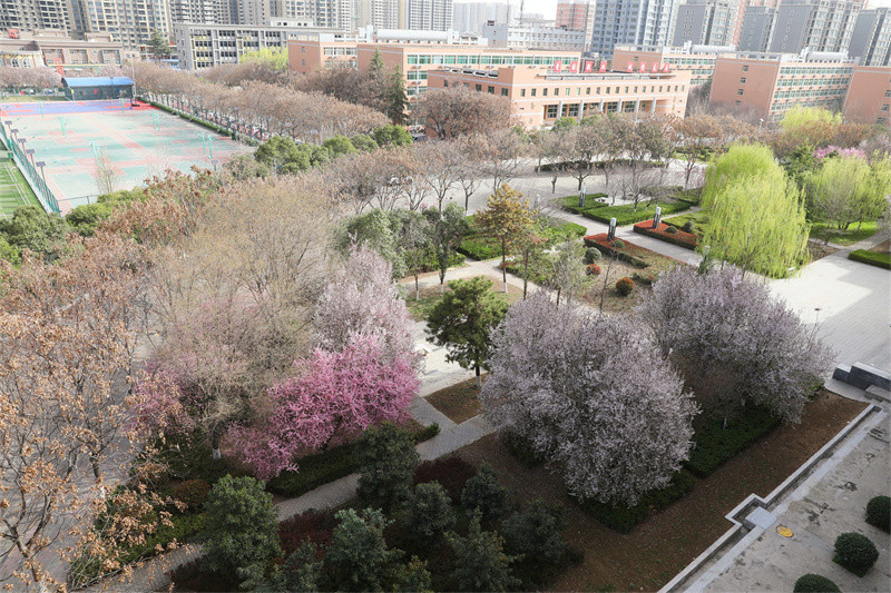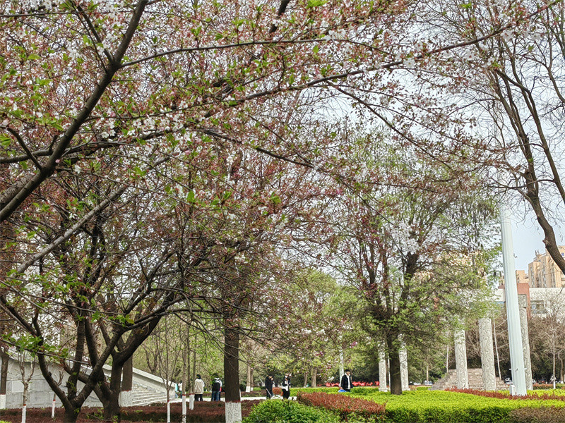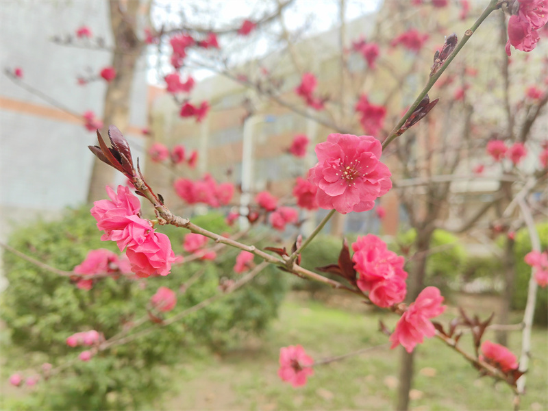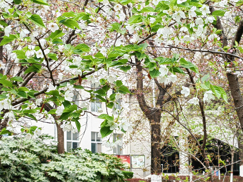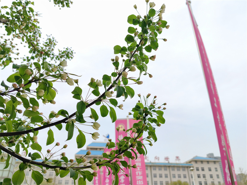 春風(fēng)輕拂 綠意盎然 春日的使者 帶著滿樹的絢爛 悄然叩響了校園的門扉