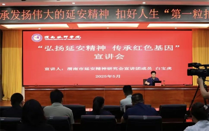 為推動(dòng)黨史學(xué)習(xí)教育常態(tài)化長效化,傳承弘揚(yáng)延安精神,進(jìn)一步開展紅色文化進(jìn)校園活動(dòng),5月21日,學(xué)院舉行“弘揚(yáng)延安精神 傳承紅色基因”宣講會(huì),邀請渭南市延安精神研究會(huì)宣講團(tuán)成員白寶虎教授作宣講報(bào)告。